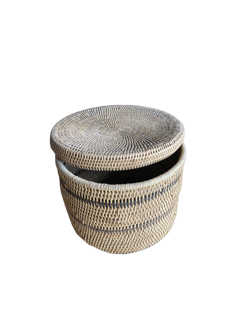 Cesto com tampa, basicamente de tecido de cipó-titica (Heteropsis spp) em cor natural ou tingido com pigmentos vegetais extraídos de sementes, folhas e resinas arbóreas. Utilizado nas aldeias para guardar objetos variados, como: utensílios para pesca e caça, roupas, ornamentos e, em alguns casos, alimentos. Encanta por sua rigidez, extrema resistência e bela simetria, características obtidas devido a sucessivas camadas de cipó tecidas pacientemente, ponto a ponto, pela mão indígena.